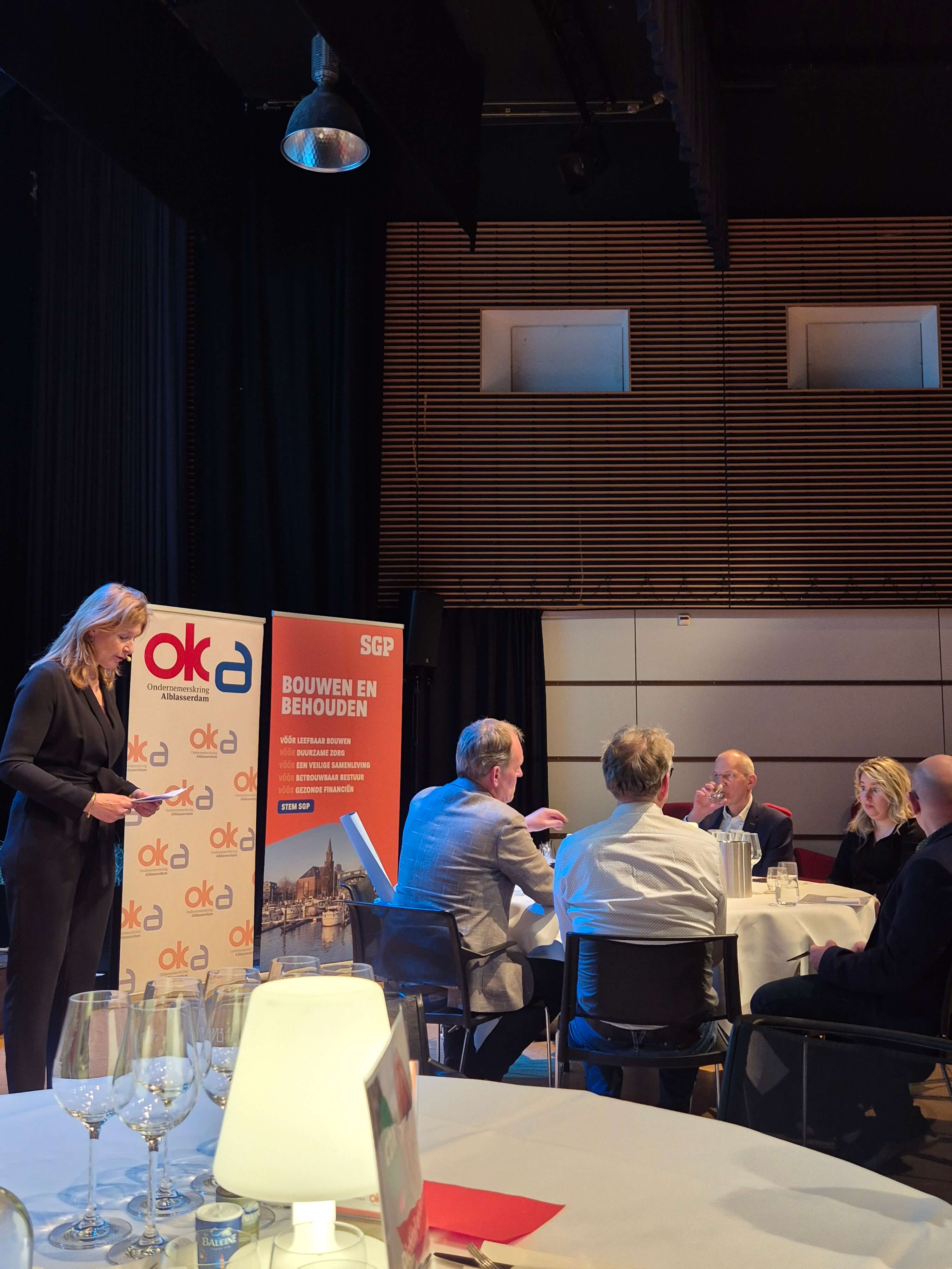 De SGP wil concrete stappen zetten. "We willen investeren in bedrijventerreinen, de Ohmweg opknappen en zorgen voor betere parkeervoorzieningen," stelde Boersma. Het Nedstaalterrein moet prioriteit krijgen voor Alblasserdamse bedrijven, Ruigenhil moet doorgroeien tot volwaardig bedrijventerrein. Ook woningbouw helpt ondernemers, benadrukte hij: wonen dicht bij het werk betekent minder files en meer beschikbare arbeidskrachten.